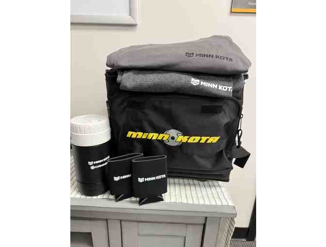 Minn Kota Rolling Cooler, can koozies, shirts, & Custom Cooler