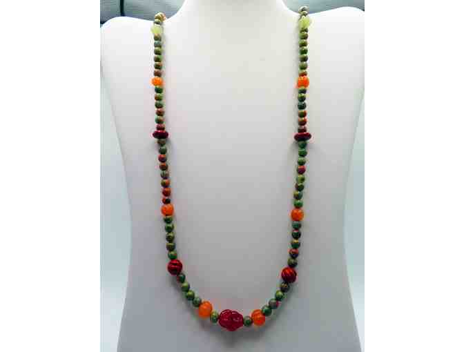 Long Necklace with Unakite Green and Pink Stones and Jasper Beads-Lot 117