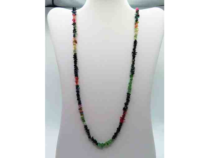 Long Necklace with Shades of Green, Pink, and White Crystals-Lot 128