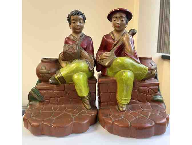Crafted with meticulous attention to detail, these vintage bookends feature intricately sculpted Japanese male figures, capturing the grace and dignity of traditional Japanese culture. Each figure is meticulously hand-painted to enhance its lifelike appearance, adding a sense of authenticity and charm to your home decor.