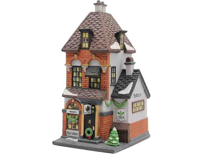 Add a cozy, old-world charm to your village with Potter's Tea Seller, part of the Christmas in the City series. This quaint brick shop features arched windows, festive wreaths, and a welcoming storefront with signs for tea lovers. Perfect for bringing warmth and a touch of tradition to your bustling city scene!