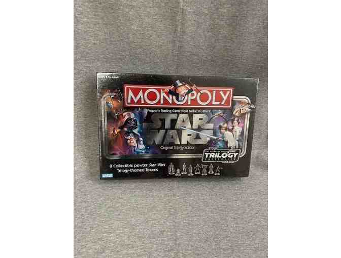 Star Wars Collectible: Rare - published in 2004 (21 years old!) - and out of print. Board Game is factory-sealed, mint condition, never opened. Limited "Trilogy Edition" with 8 Collectible Pewter Pieces. Gift from Milton Bradley CEO at Gaming Convention. Star Wars Themed Monopoly Game - very hard to find. Published by Milton Bradley / Hasbro #42352. Item can be shipped nationwide to Winning Bidder after Auction (with insured shipping) or picked up for FREE in Enfield, CT.