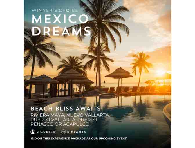 - Luxurious 5-night stay at the Mayan Palace in Riviera Maya, Nuevo Vallarta, Puerto Vallarta, Puerto Peñasco, or Acapulco for Two (2)