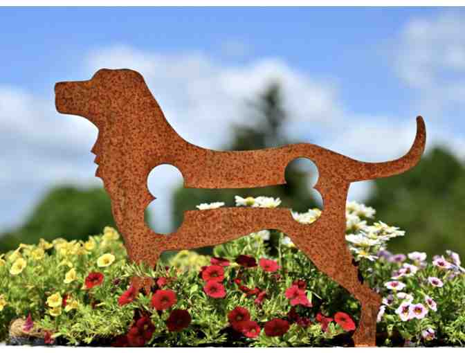 This auction item includes a 12" tall tabletop version of the American Dog sculpture (safe for indoor or outdoor use), a keychain version of the American Dog sculpture, and a copy of the hardcover book "Exit 48: The Art of Never Giving Up".