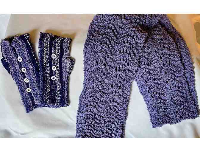 Handknit scarf (5 1/2' long) and handknit fingerless mittens
