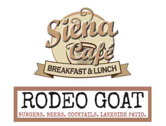(1) $25 Sienna Cafe Gift Card Plus (1) $50 Rodeo Goat Gift Card