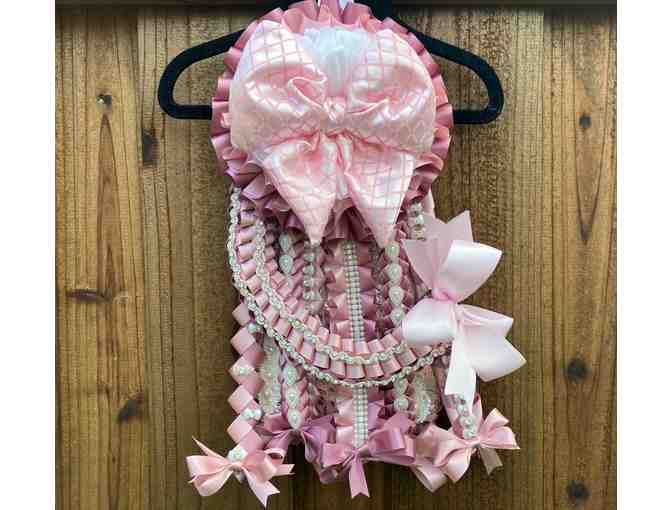 Gorgeous pink color. This mini mum can be used for youth cheer, mom, etc. It has intricate detail and trendy bows.