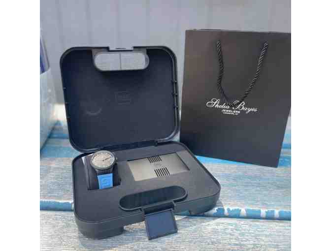 Add timeless style to your collection with this stunning Glock solar titanium  watch, generously donated by Sheila Bayes Jewelers. Known for exceptional quality and impeccable design, this piece blends classic elegance with everyday wearability—perfect for any occasion.