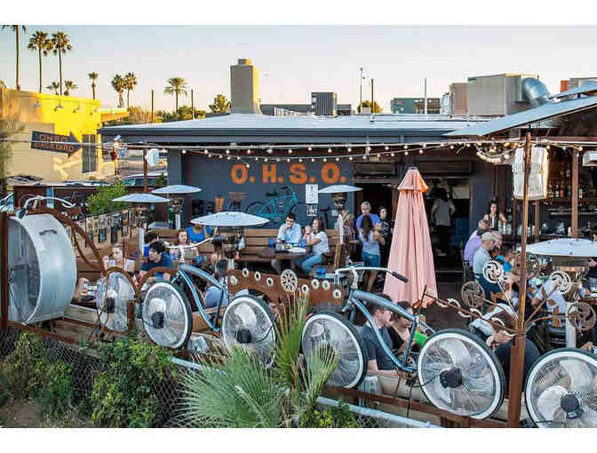 A $30 gift card to O.H.S.O. Brewery & Distillery, with locations in Arcadia, Gilbert, Paradise Valley, Phoenix, Scottsdale, and Surprise, Arizona.