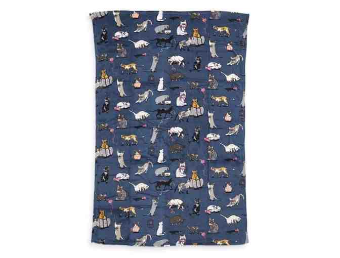 You are bidding on a Vera Bradley cat print throw that measures 50 inches (W) x 80 inches (H). Made from 100% polyester micro-fleece. Machine wash cold separately, gentle cycle, only non-chlorine bleach when needed; tumble dry low