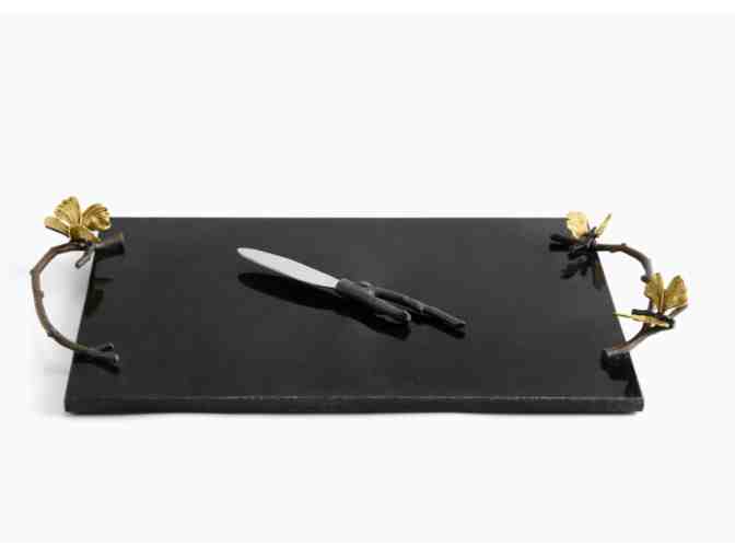 The Butterfly Ginkgo Collection celebrates the representation of flora as fauna. Michael's fascination with a particular type of ginkgo tree , the Ginkgo Biloba, or "Butterfly Ginkgo", which grows with a double leaf reminiscent of a butterfly's wings, gave rise to a fantasia image of the plant. Executed at the highest level of handcraftsmanship, each piece is rendered in solid brass with hand etched cocoon-shaped vessels. The pieces in the collection are a tour de force of the handcrafted process, capturing the poetic spirit that is so deeply indicative of Michael's work.