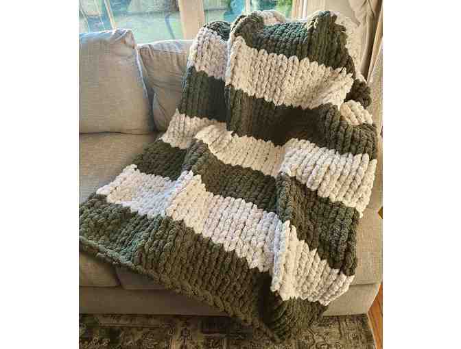 Gorgeous and cozy hand crocheted chunky knit blanket, perfect for those upcoming cold nights!