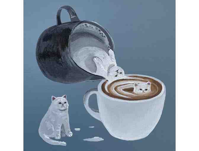 Indulge in the ultimate blend of cozy and quirky with "Whipped", a whimsical art print that reimagines your morning latte with a twist of feline charm.