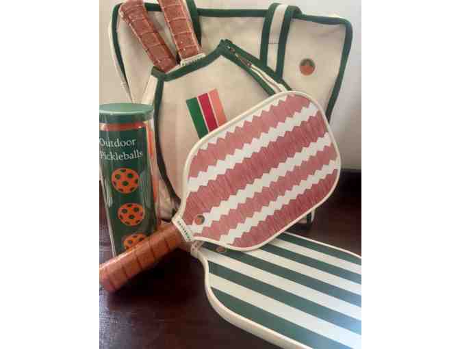 Set includes: net, court markers, tape, paddles, balls, paddle bag and clip
