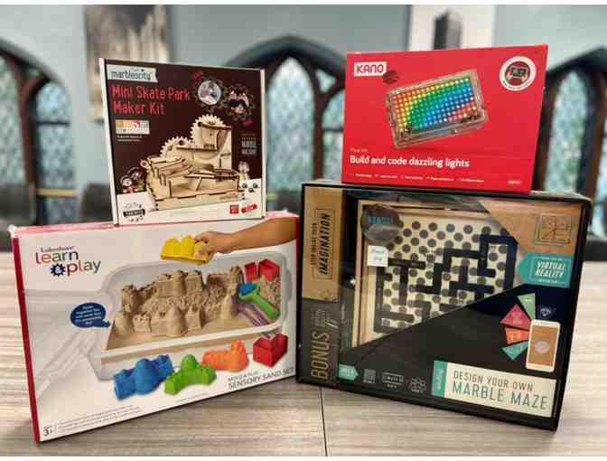 Enjoy a variety of stimulating STEM activities with these amazing kits. Kinetic Sand, Build and Code Dazzling Lights, DIY Marble Skate Park & Maze Set.