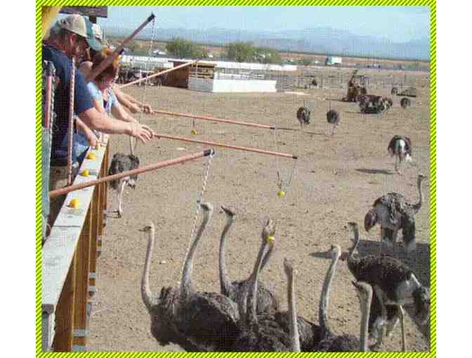 A certificate for admission for four to feed the critters at the Rooster Cogburn Ostrich Ranch in Picacho, Arizona. Includes stingray food.