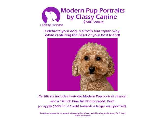 Modern Pup Portraits are designed as bold, contemporary art pieces that celebrate your dog in a fresh and stylish way. They bring a sleek, artistic statement to your home while capturing the heart of your best friend. In-studio Dog Portrait Session and a 14-inch Fine Arte Portrait Print (or apply $600 print credit towards a larger wall portrait).