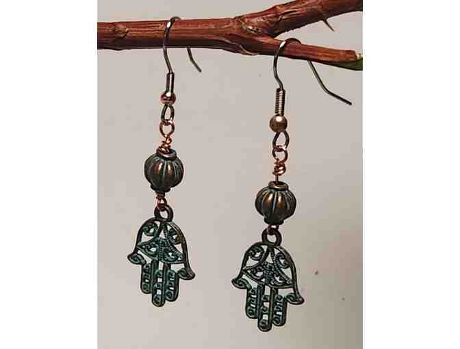 Hamsa, Hand of Protection, with Copper and Pewter Earrings by Betsy Roberts