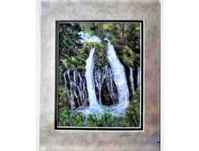 Local artist, Marion Lauter, brings to life a moment in time at Burney Falls in Shasta County, California. The lifelike imagery of the Burney Falls environment is created through a wet felting technique with wool and other fibers that truly captures the magic of the waterfalls.