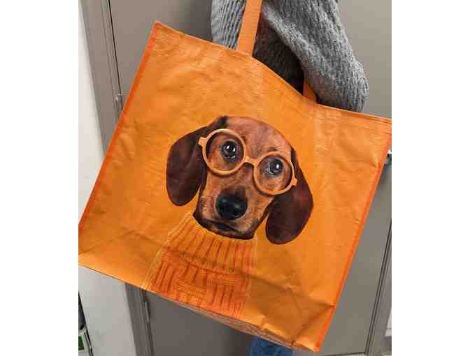 You are buying a TJ MAXX Large Reusable Shopping Bag Tote with an adorable dog on the front. This handsome hound would love to join you for everyday errands and trips to the grocery store. A necessity for any dog lover!