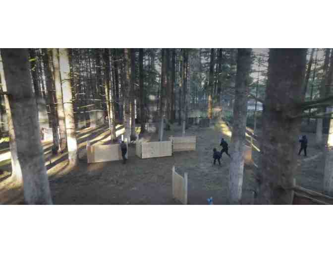 A certificate for a Paintball or Gellyball Party for up to 6 people at Camp Dakota in Scotts Mills, Oregon.  The package includes: