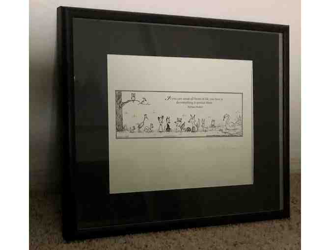 You are bidding on this delightful print of a 2017 pen and ink drawing from Patrick McDonnell. (Mutts.com)  This is signed in pencil by Patrick McDonnell.